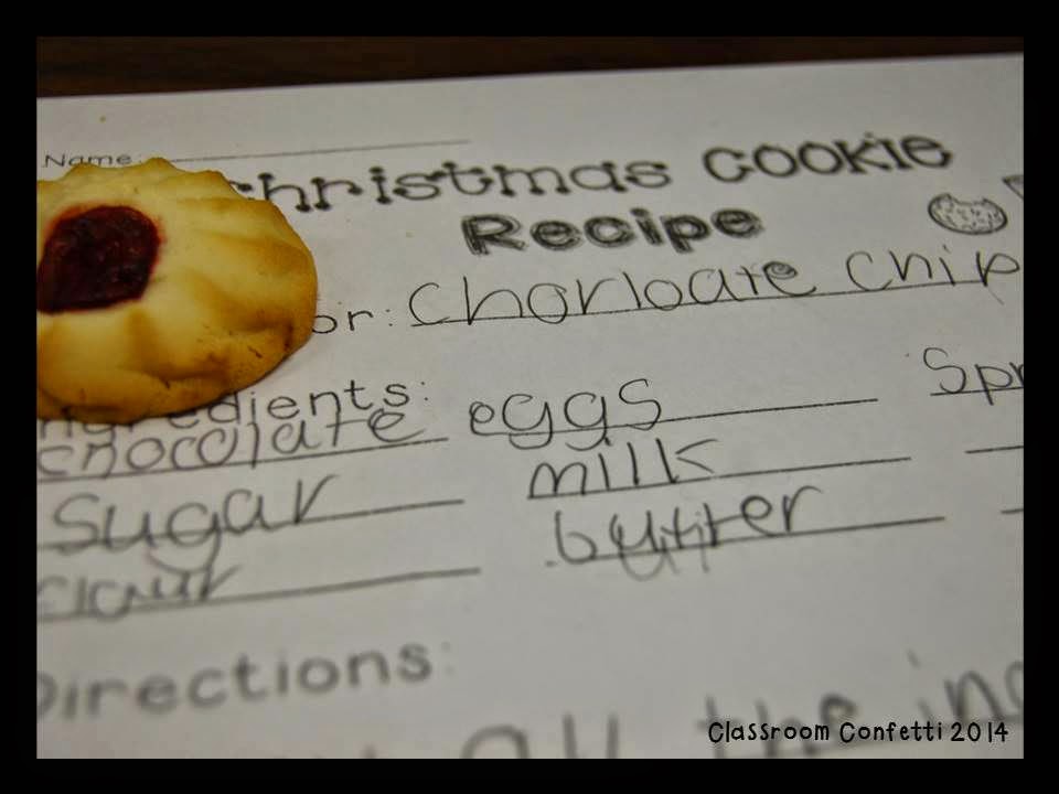 We worked on our informative writing skills while writing a recipe for a Christmas cookie. Students got to choose which Christmas cookie they wanted to create. We wrote down our ingredients and sequenced the steps necessary to make the cookies. All while eating yummy cookies!! To check this FREEBIE out click on the link or any of the pictures!