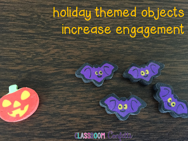 There are so many ways to do this. I have used the counting bears or dinosaurs, beans, cereal, and small erasers (you can get seasonal ones too!) When children are able to use their hands and experiment with an idea (we can use math for an example,) they can begin to develop mastery.