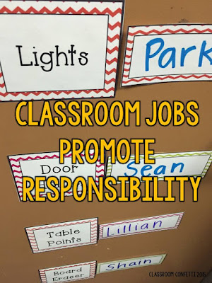I do this by using table points. In my classroom, each table has an assigned color. Table points are recorded at the front of the room. To help me give (and sometimes take away) table points, I assign it as a classroom job in the beginning of the year. You can grab my FREE classroom jobs here! Classroom jobs are also a great way to manage students on an individual or partner level. When students have a job, they learn about responsibility and become excited about it.